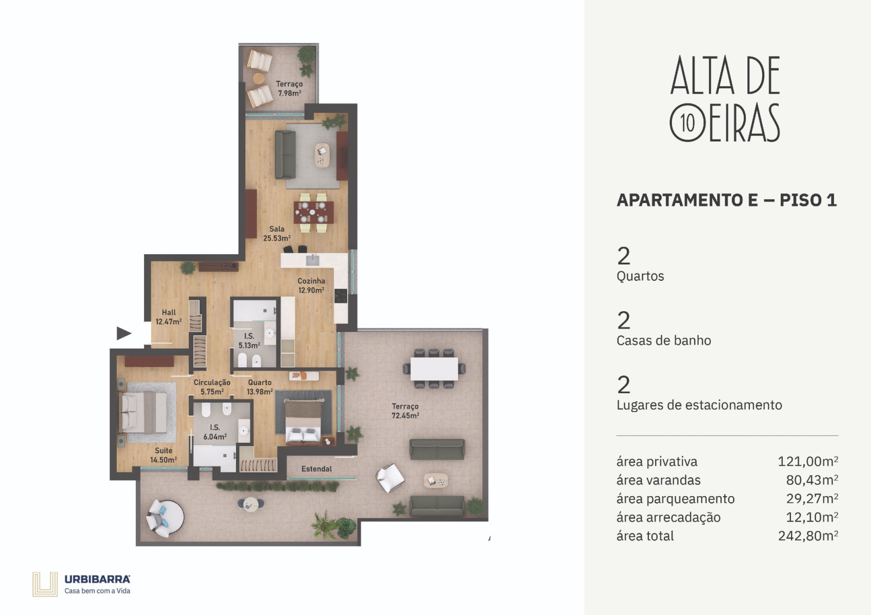 | E | 1 | T2 | 121 | 80.43 | 29.27 (2 parking spaces) | 12.1 | 242.8 | 565.000 | Available | Download |